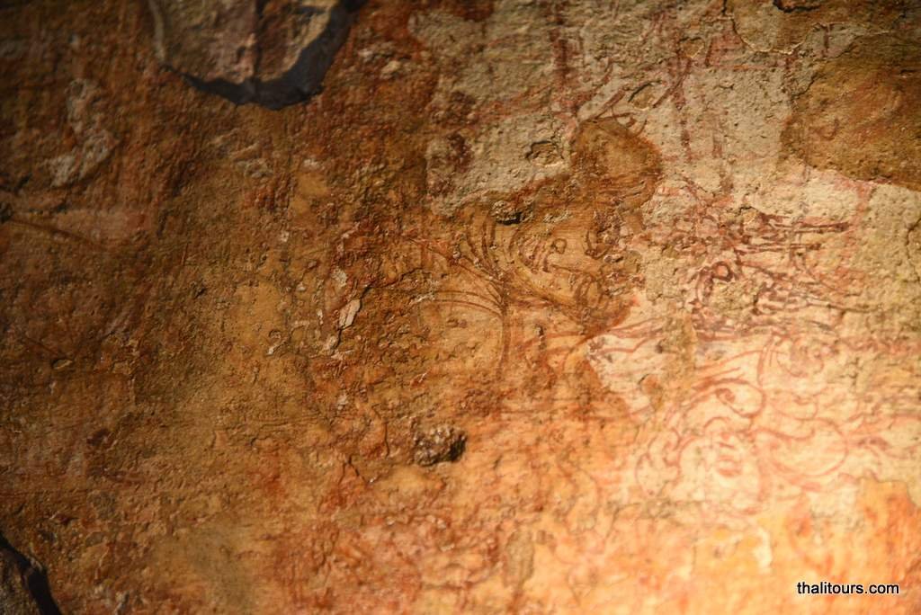 வர்ணங்கள் (Colors): ஓவியங்களில் சிவப்பு, மஞ்சள், வெள்ளை, கருப்பு, நீலம் மற்றும் பச்சை போன்ற நிறங்கள் பயன்படுத்தப்பட்டுள்ளன. குறிப்பாக, சிவப்பு மற்றும் மஞ்சள் நிறங்களின் பயன்பாடு குறிப்பிடத்தக்கது.