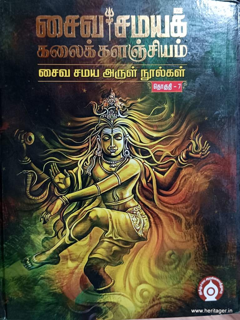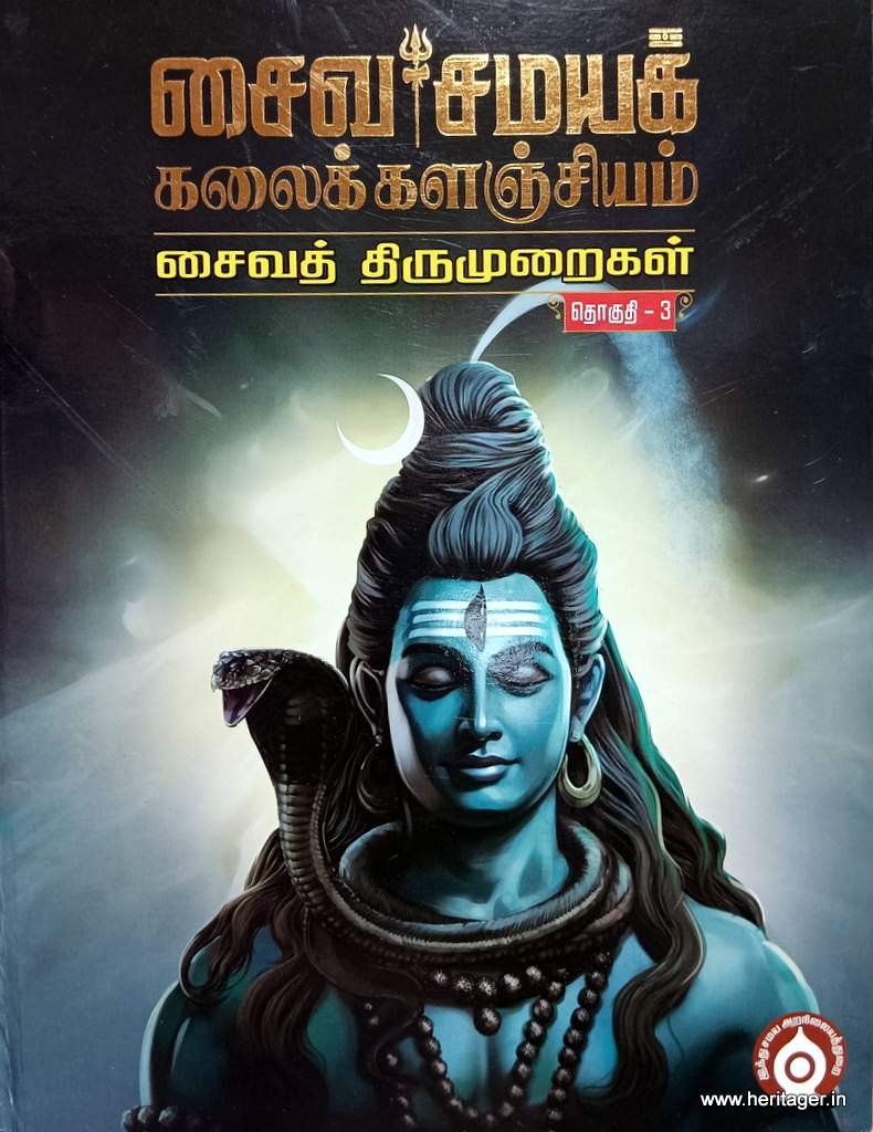இந்து சமய அறநிலைய துறை வெளியிட்டுள்ள சைவ சமய ஆய்வாளர்கள் மற்றும் அடியார்கள் வைத்திருக்கவேண்டிய, 10 தொகுதிகள் கொண்ட மிகப் பெரிய சைவ சமய கலைக்களஞ்சியம் . வெகு சில மட்டுமே இருப்பில் உள்ளன.