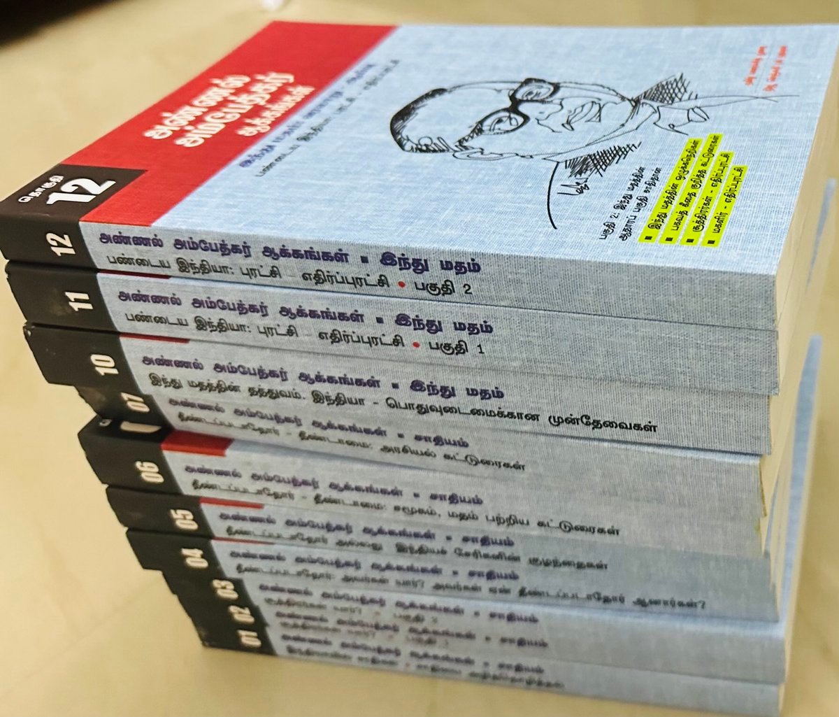 மாண்புமிகு தமிழ்நாடு முதலமைச்சர் திரு. மு.க. ஸ்டாலின் அவர்கள் தலைமைச் செயலகத்தில், தமிழ் வளர்ச்சித் துறை சார்பில் அண்ணல் அம்பேத்கரின் ஆக்கங்களை எளிய தமிழில் மொழிபெயர்த்து மக்கள் பதிப்பாக முதல் 10 தொகுதிகளை வெளியிட்டார்.