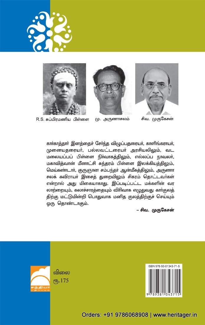 கார்காத்தார் இனத்தைச் சேர்ந்த விழுப்பதரையர், காளிங்கராயர், முனையதரையர், பல்லவட்டரையர் அரசியலிலும், வடமலையப்பப் பிள்ளை நிர்வாகத்திலும், எல்லப்ப நாவலர், மகாவித்வான் மீனாட்சி சுந்தரம் பிள்ளை இலக்கியத்திலும், மெய்கண்டார், குருஞான சம்பந்தர் ஆன்மீகத்திலும், அருணாசலக் கவிராயர் இசைத் துறையிலும் சிகரம் தொட்டவர்கள் என்றால் அது மிகையாகாது. இப்படிப்பட்ட மக்களின் வரலாற்றையும், கலாச்சாரத்தையும் விரிவாக எழுதுவது கார்குலத்திற்கு மட்டுமின்றி பொதுவாக மனித குலத்திற்குச் செய்யும் ஒரு தொண்டாகும்.